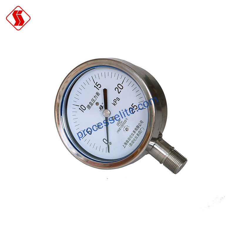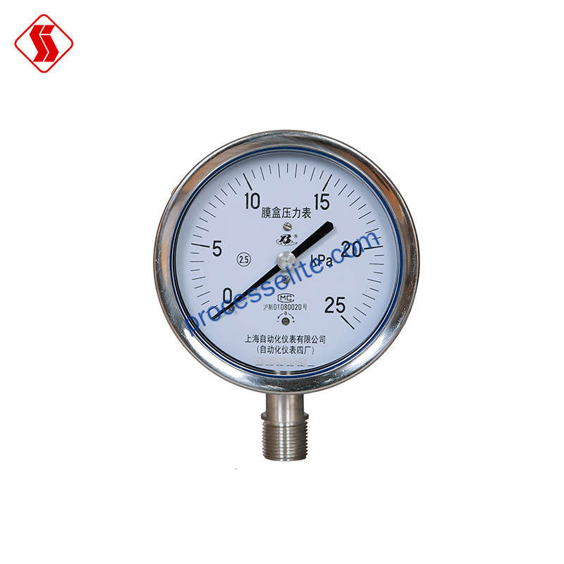 2. 化工生产过程: 在精细化工合成反应中, 膜盒压力表能够敏锐地捕捉到微妙的气压变化, 帮助工程师精准调控反应条件, 确保化学反应按照预期进行, 提高产品质量和安全性。