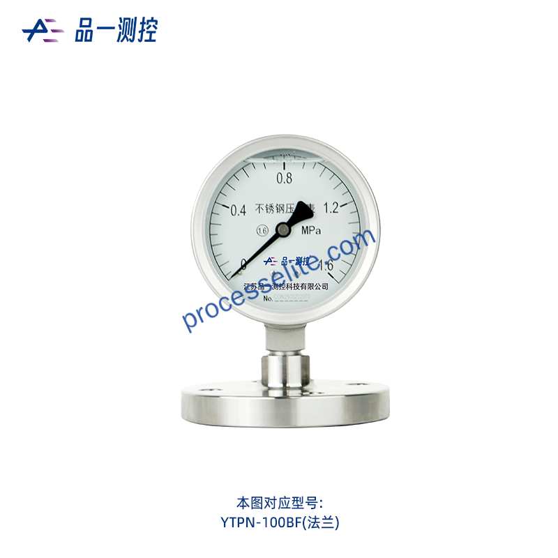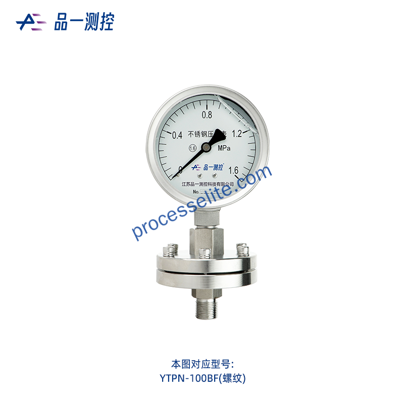 不锈钢隔膜压力表的测量原理是基于弹性元件 (如隔膜) 的变形来测量压力。当被测介质的压力作用于隔膜时, 隔膜会发生形变, 这种形变会压缩压力仪表测压系统的密封液, 使其形成一个与测量介质压力相当的压力差 (△P) 。当隔膜的刚性足够小时, 压力仪表测压系统形成的压力就近似于测量介质的压力。具体来说, 隔膜压力表由隔膜隔离器与通用型压力表组成一个系统。当被测介质的压力作用于隔膜时, 隔膜发生变形, 压缩系统内部填充的工作液, 使工作液形成一个与P相当的△P。这个压力通过工作液的传导使压力仪表中的弹性元件 (如弹簧管) 产生相应的弹性形变和位移, 最终通过与之相配的压力仪表工作原理显示出被测压力值。